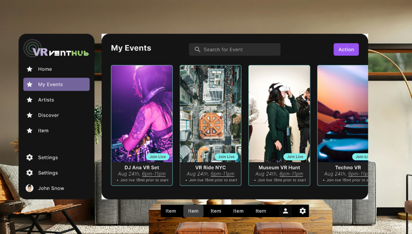 For part two of this project, I decided to focus on the VR UI of VrventHub. This is a solo project that I wanted to elaborate on my own, to gain more knowledge of spatial design and delve into new prototyping tools.