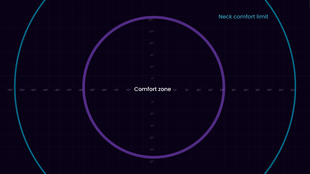 positioning of the horizontal field of view. In augmented reality, a field of vision of between 30 and 50 degrees is ideal. A significantly broader field of view (FoV) is provided by VR; it typically ranges from 90 to 110 degrees, with some high-end devices going as high as 120 degrees.